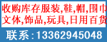 義烏庫存公司大量收購庫存商品:庫存服裝,庫存鞋,庫存箱包,外貿庫存,庫存積壓,庫存玩具,庫存襪.. [詳細]